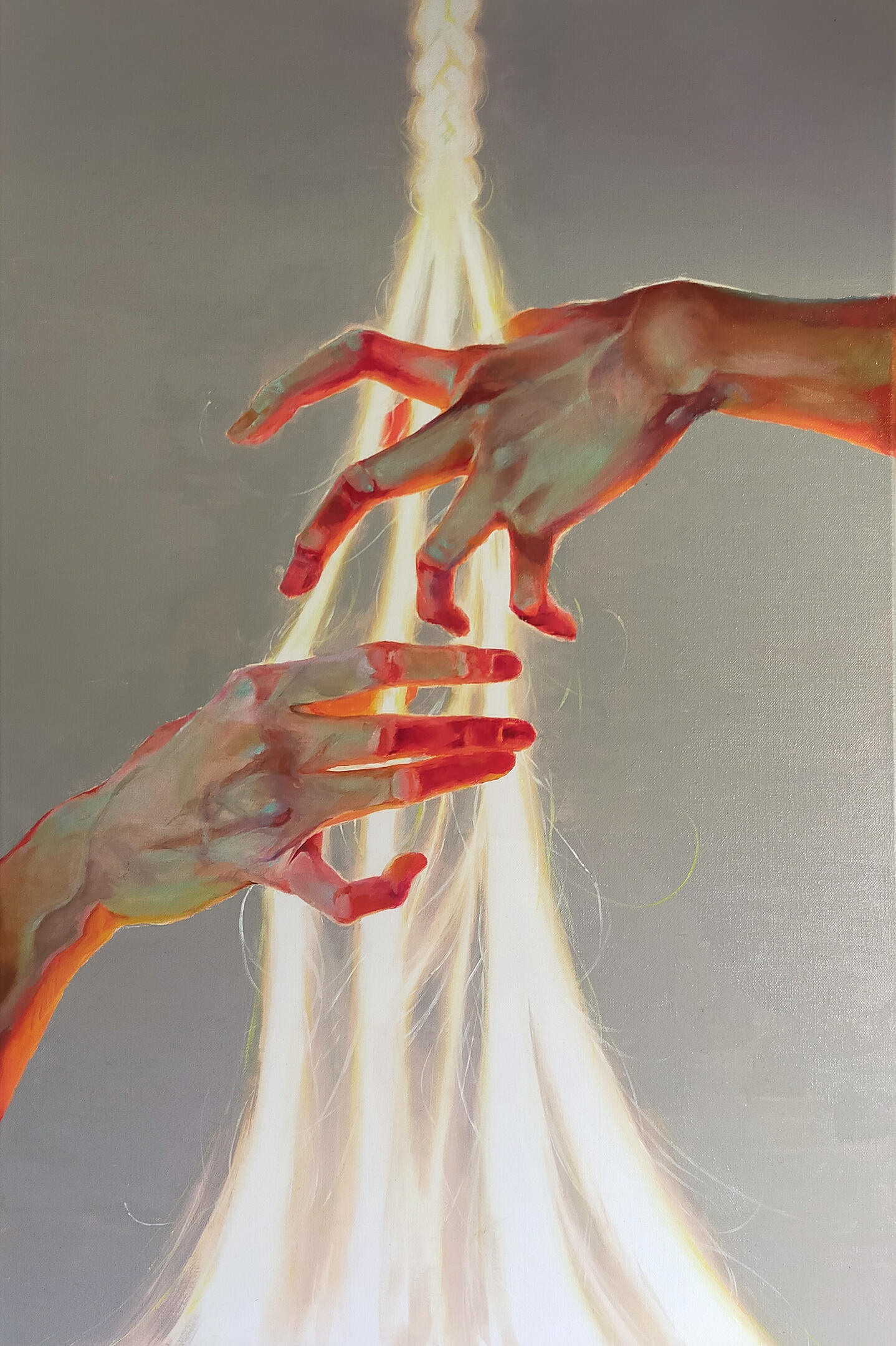 Painted in the soft intimacy of a shared creative moment, this piece drifts into a childlike world of comfort and memory, where imagination feels safe and endlessly warm.